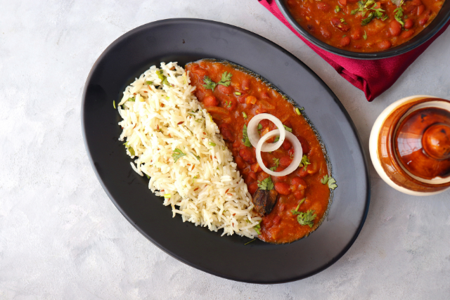 Comfort food at its best – rajma chawal with a touch of ghee.