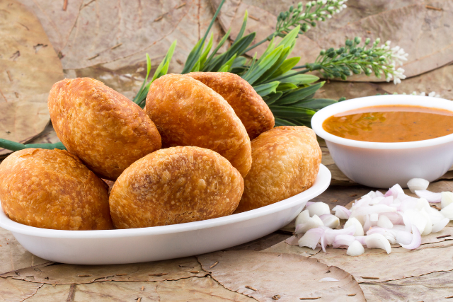 Crispy, flaky kachoris with savoury filling.